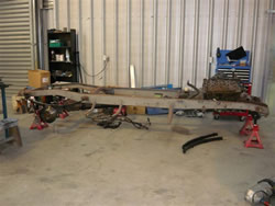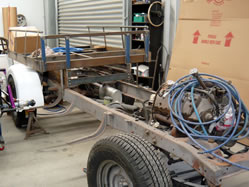 At this stage we have mocked up the chassis, brakes, brake lines, steering, park brake etc. and the tyres have been fitted onto the rims – we now have a rolling chassis.