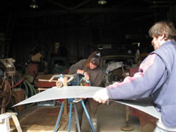 Wheeling shape into the back panel (even the missus has to help!!!) |