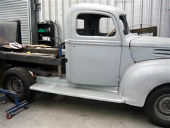 With the front on we can now work on the running boards and will mount the rear guards. This is where things will rest for a while. Work has temporarily stopped because we have had plenty to keep us busy with Eagle’s sponsoring of the National Modified Speedway weekend at the end of January and we are now rolling into the upcoming Eagle Automotive sponsored Americarna weekend – the margarita mixer has taken priority for a freshen up for this event!