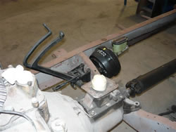 The cab was mounted and door gaps set up with rebuilt hinges and new pins. Steering column fitted and jackshaft to the new box done. Front and rear shocks mounted as well as the exhaust. The front sheet metal is now tidy and fitted – although there is a bit of work still to do here, as I think Rusty has run over a few marker posts in his early days!!
