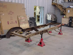 At this stage we have mocked up the chassis, brakes, brake lines, steering, park brake etc. and the tyres have been fitted onto the rims – we now have a rolling chassis.