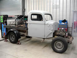 With the front on we can now work on the running boards and will mount the rear guards. This is where things will rest for a while. Work has temporarily stopped because we have had plenty to keep us busy with Eagle’s sponsoring of the National Modified Speedway weekend at the end of January and we are now rolling into the upcoming Eagle Automotive sponsored Americarna weekend – the margarita mixer has taken priority for a freshen up for this event!